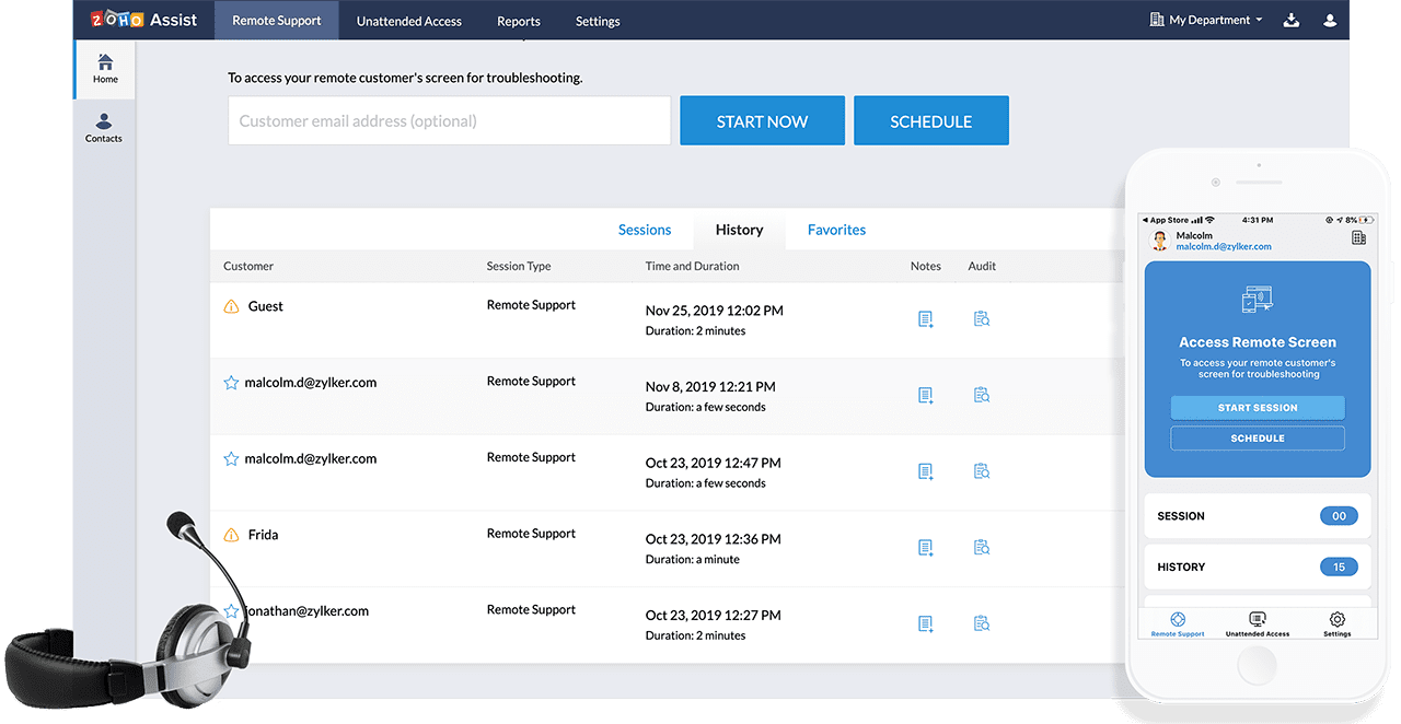 Zoho Assist ayuda a las empresas al proporcionar un software seguro de asistencia y acceso remotos basado en la nube, facilitando una experiencia de asistencia al cliente de primer nivel